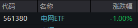 电网ETF(561380)早盘拉升涨超1.3%,午间开始回落,收跌1.0%。