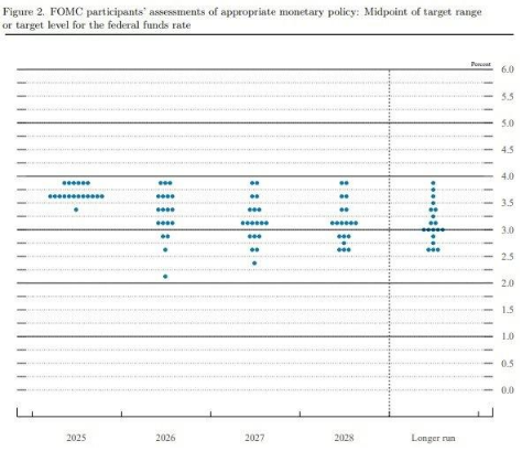 美联储降息如期落地。当地时间12月10日,美联储宣布降息25个基点,将联邦基金利率目标区间下调至3.50%-3.75%,这是继9月17日,10月29日之后的年内第三次降息,幅度均为25个基点。本次降息落地前市场已经有充分预期,关注点更多在于美联储对后续降息路径的态度。点阵图中位数维持了2026年仅有1次降息的预测,鲍威尔也表示当前利率处于“有利位置”,表明后续降息门槛可能提高。